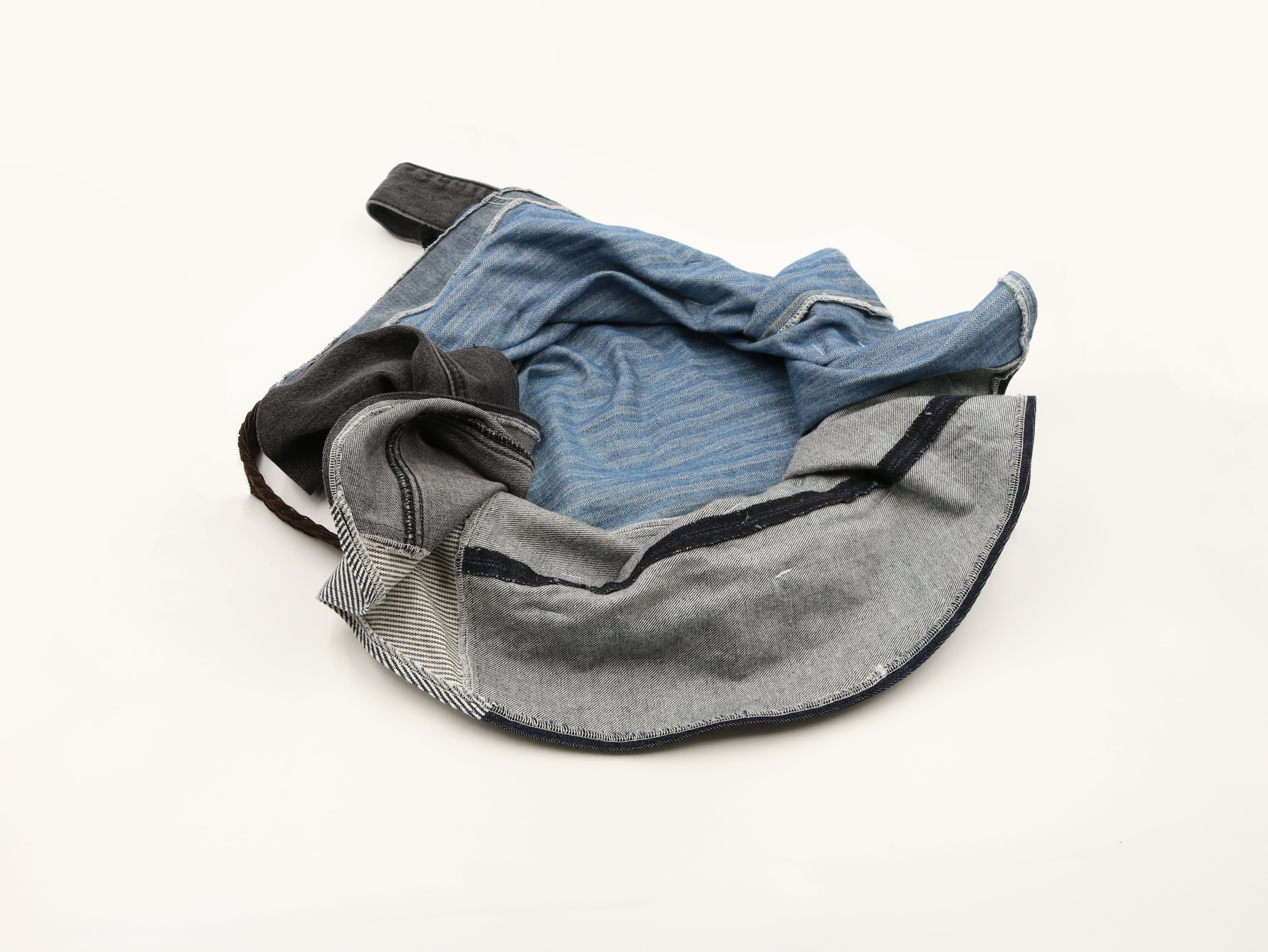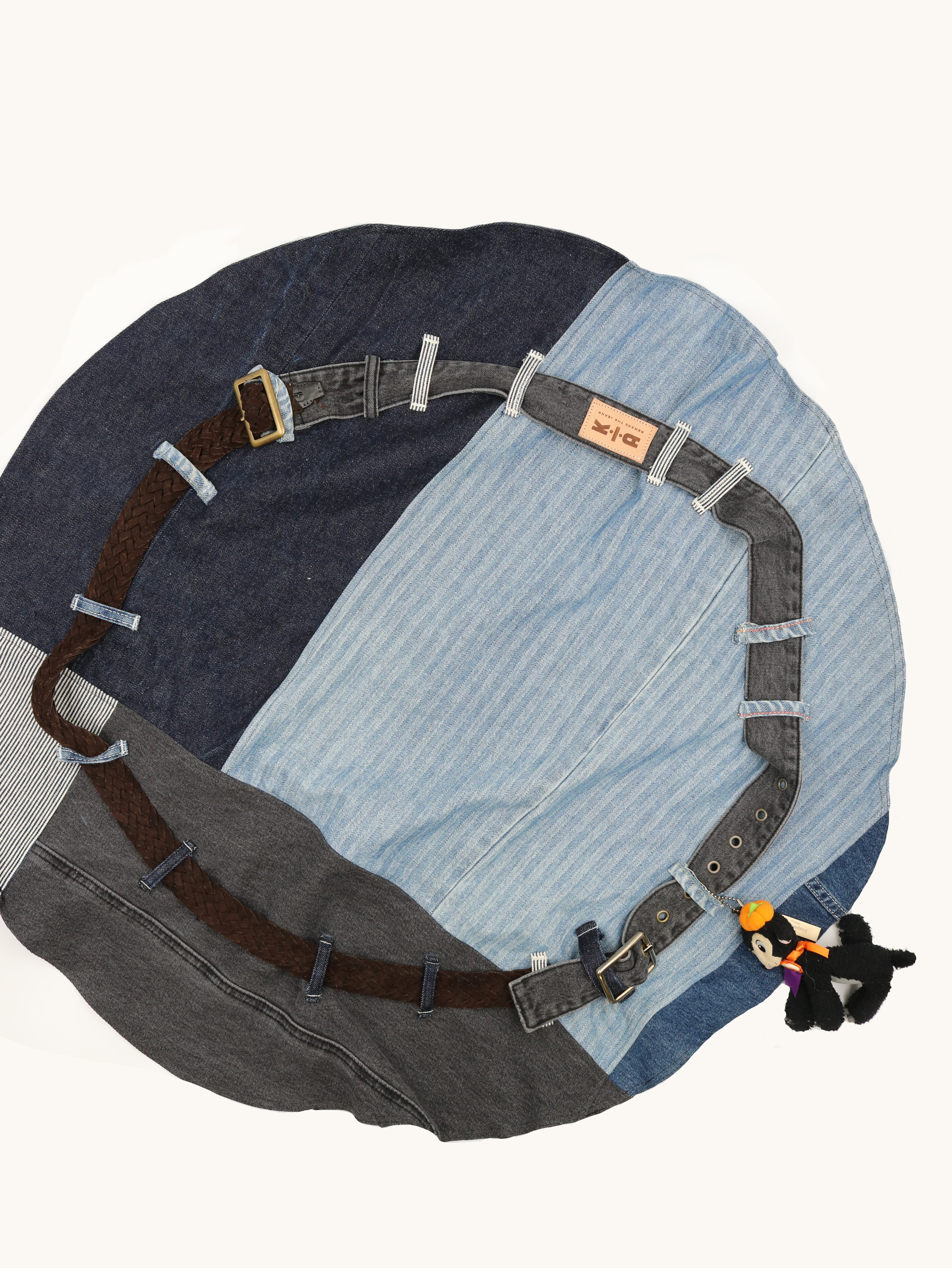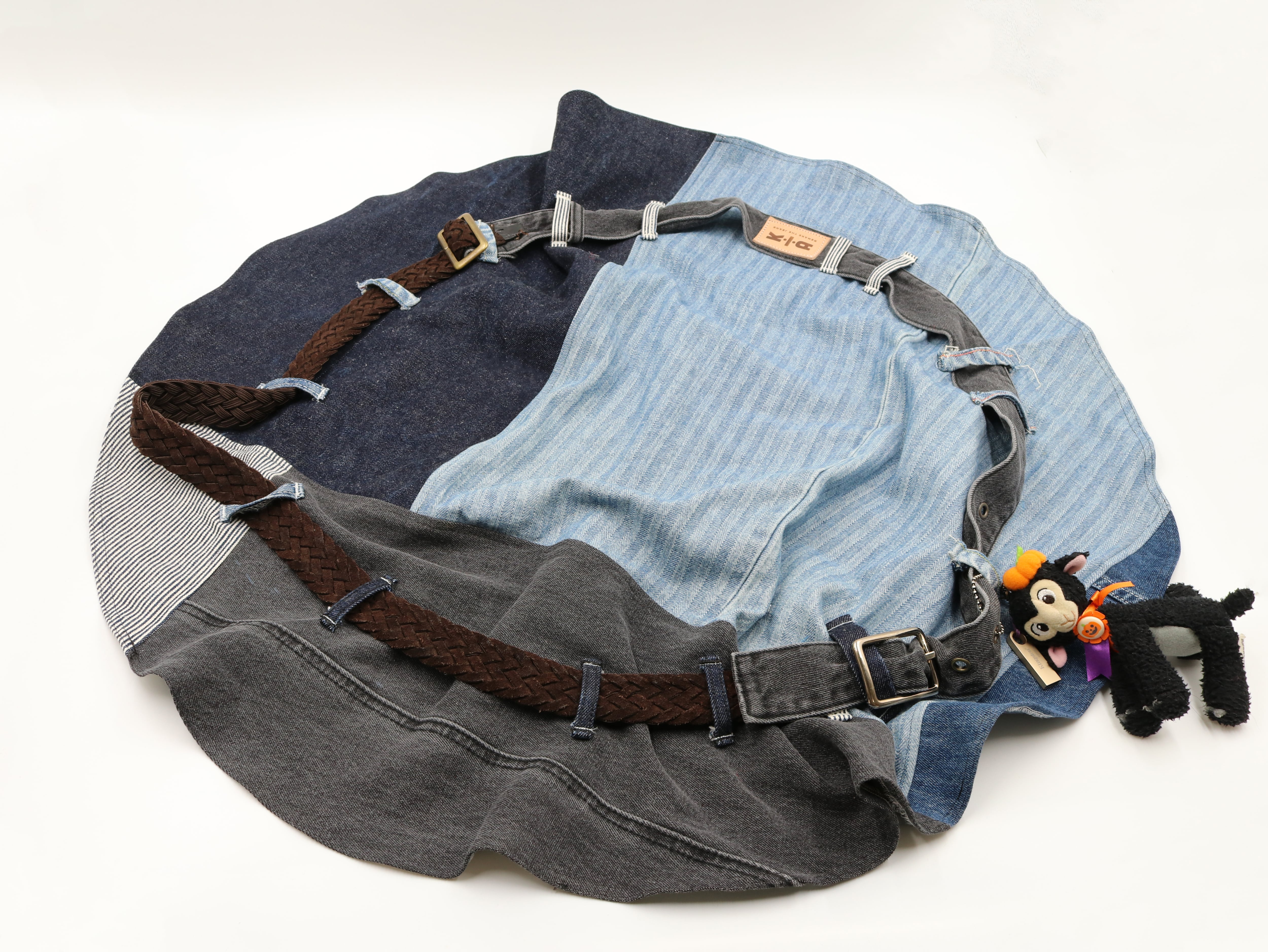 ユーズドのデニムパンツ3本とベルトを解体・再構築し、