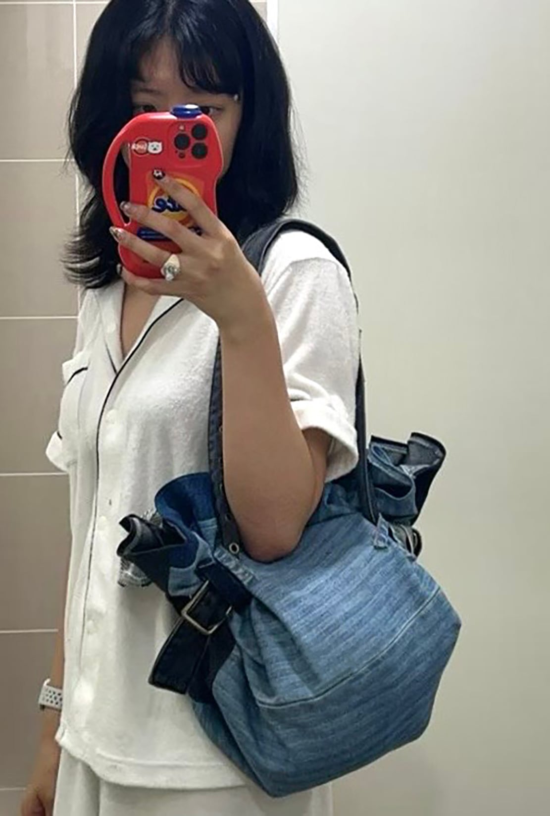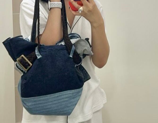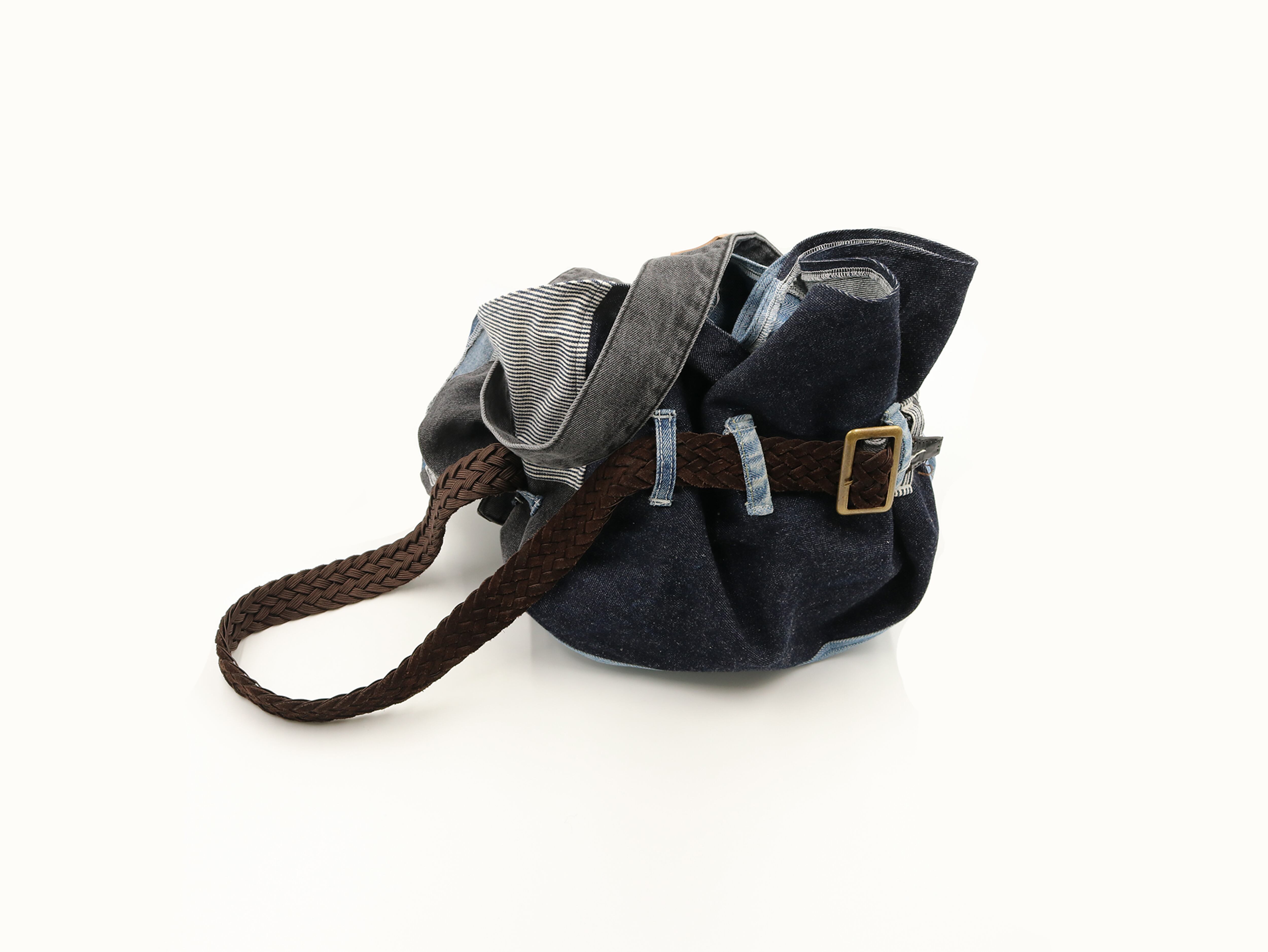 素材:ヴィンテージデニム、金属、牛革