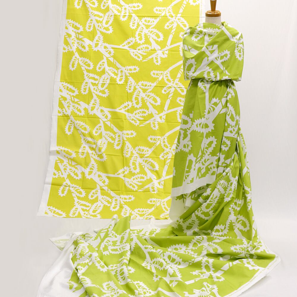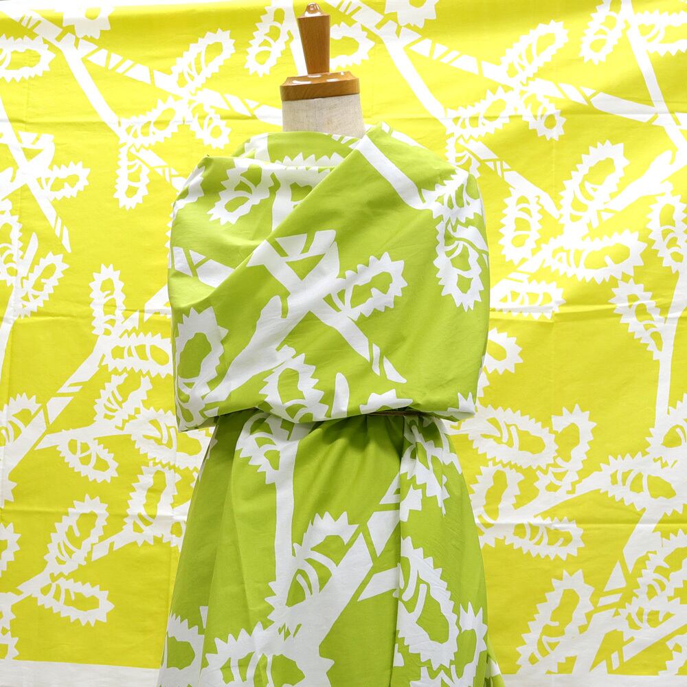 今回のモチーフは『オオキツネヤナギ』。手捺染ならではの風合いと、モチーフをイメージした爽やかな色合いが気持ちを明るくしてくれます。色は黄色と緑色をご用意しました。