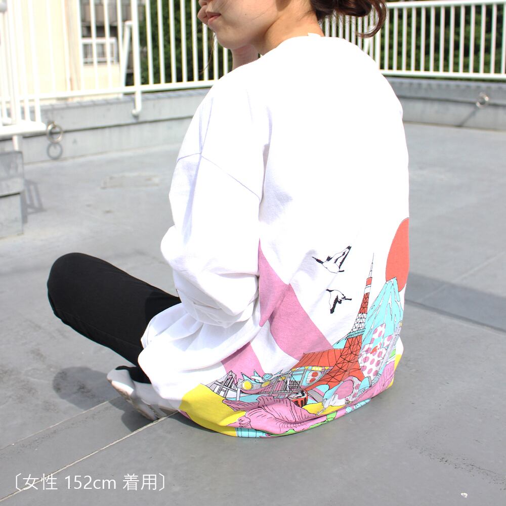 東京という街は華やかな人や物、建物等に溢れまさに華の街です。私は地方都市から上京し、その華やかさに魅了され大きく影響を受けました。そのような東京で見た景色や思いをデザインと配色として製品に詰め込み、たくさんの人に届けたいと考えています。縁取りの線や風景のデザインは江戸時代に発達した浮世絵に使われる表現を参考にしていますが、現代的なファッションスタイルにも使用していただくことができる温故知新的要素を持ったアイテムとなっております。