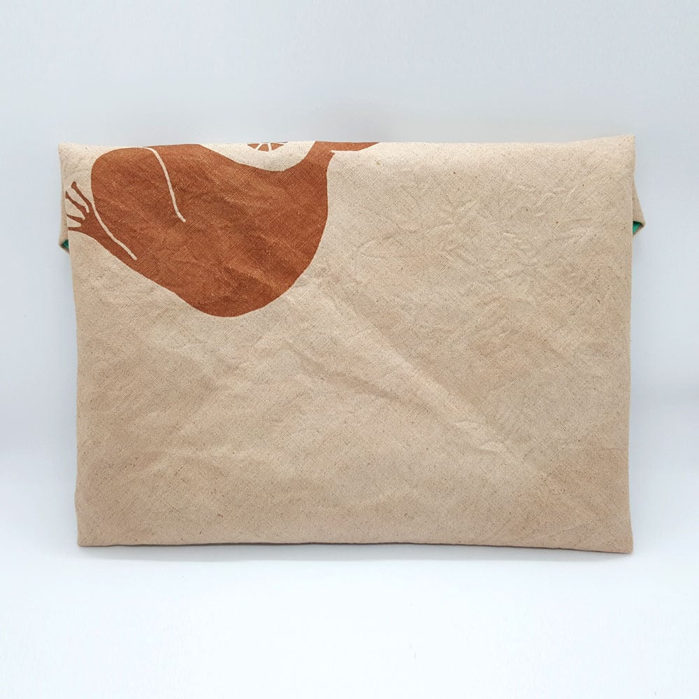 少し個性的なアニマルをお出掛けのお伴に。表布の柿渋プリント・柿渋染めだけでなく、内布もカラフルに仕立てました。見るたびに楽しい、開けるたびに気分を上げるアイテムです。手染め・手捺染により、同じものは2つとないオールハンドメイドの魅力をお楽しみ下さい。