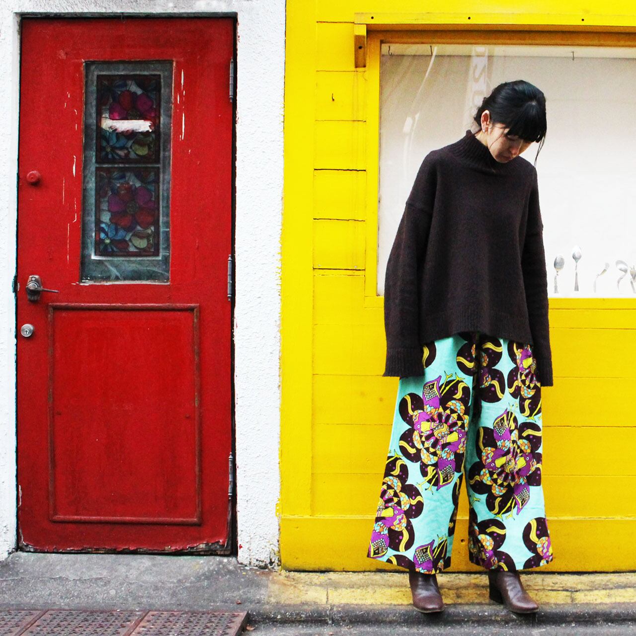 また普段使いのパンツでもファッションのアクセントとしてお使いいただけます。色味はpopありながらトーンを押さえていますので、街中ではどこかレトロでノスタルジックな印象を楽しんでいただけます。また、麻レーヨンの光沢感が揺れるたびに高級感ある風合いに仕上がっているのも特徴です。