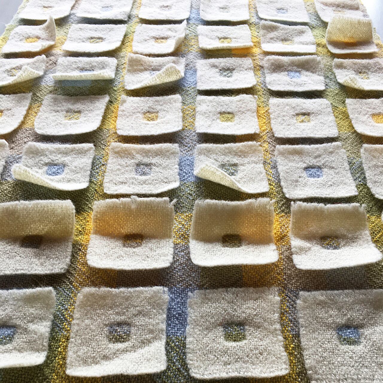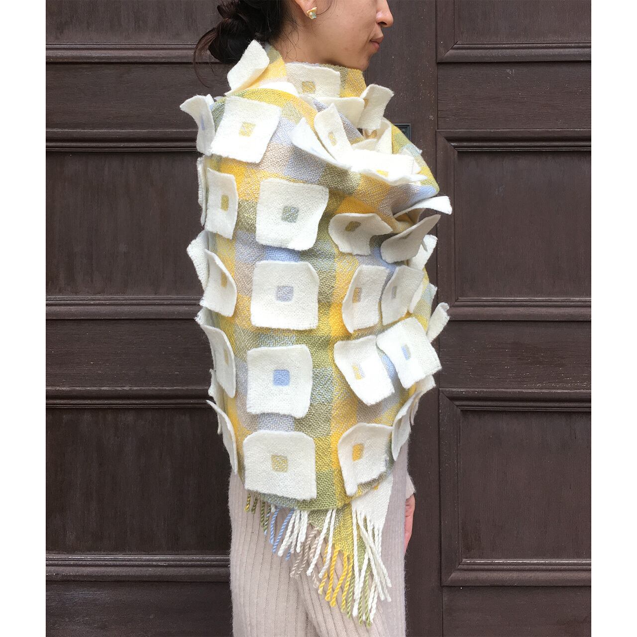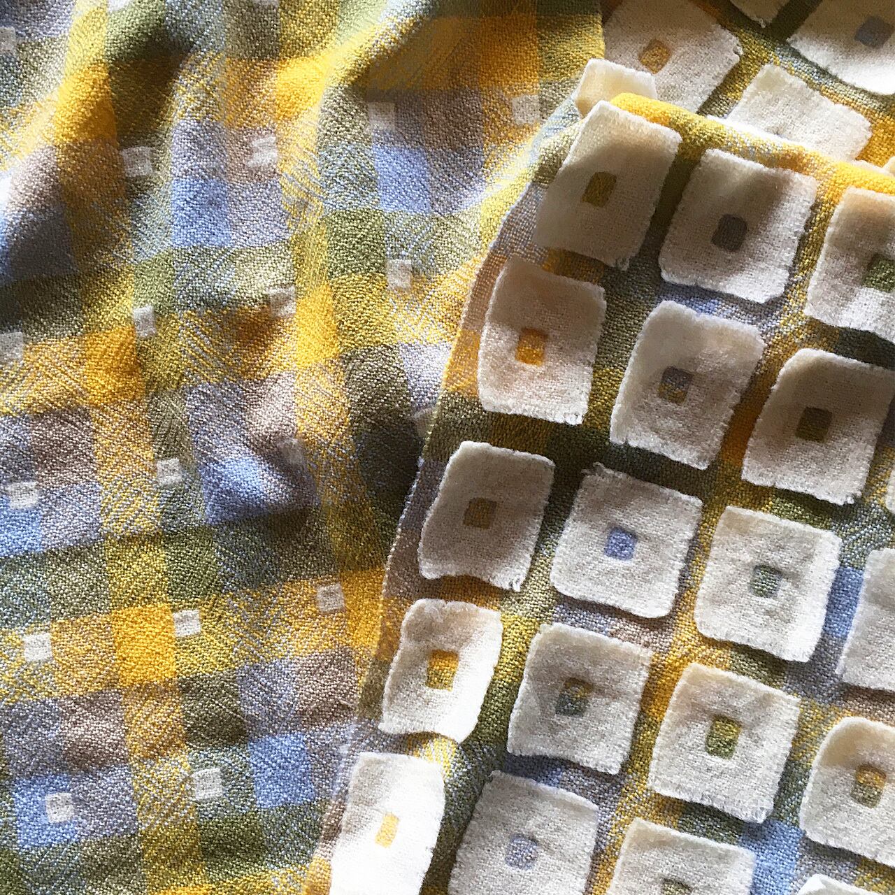 ウールで織った二重織の片面を縮絨途中でカットした一枚布です。