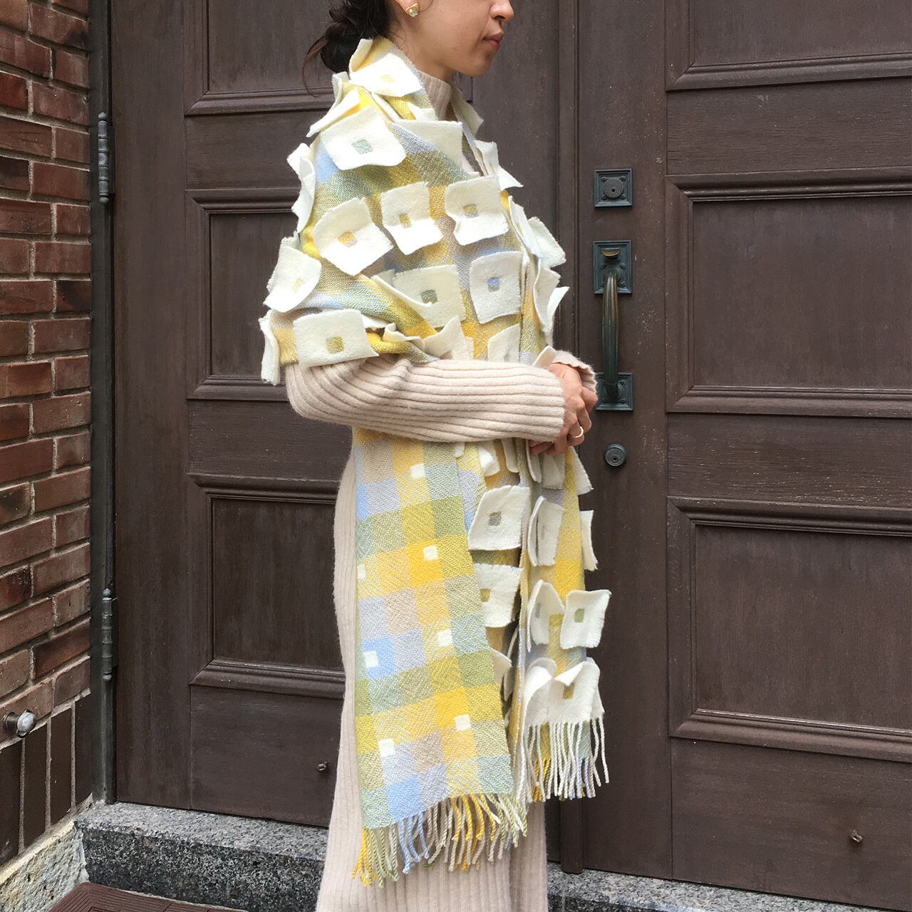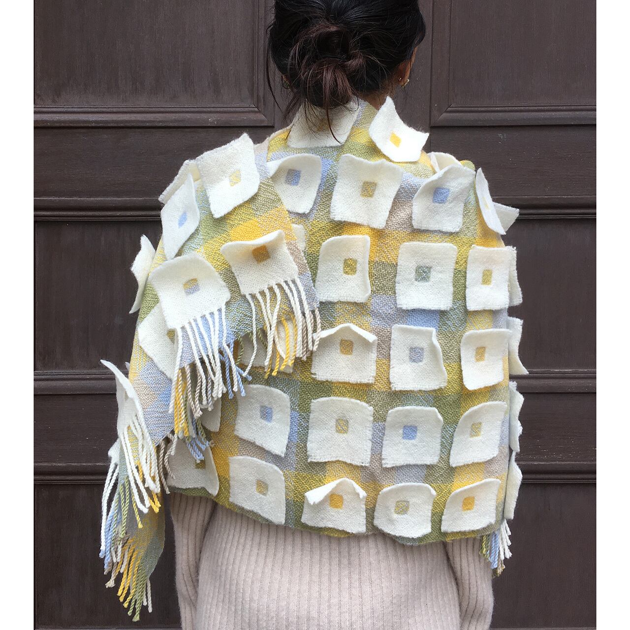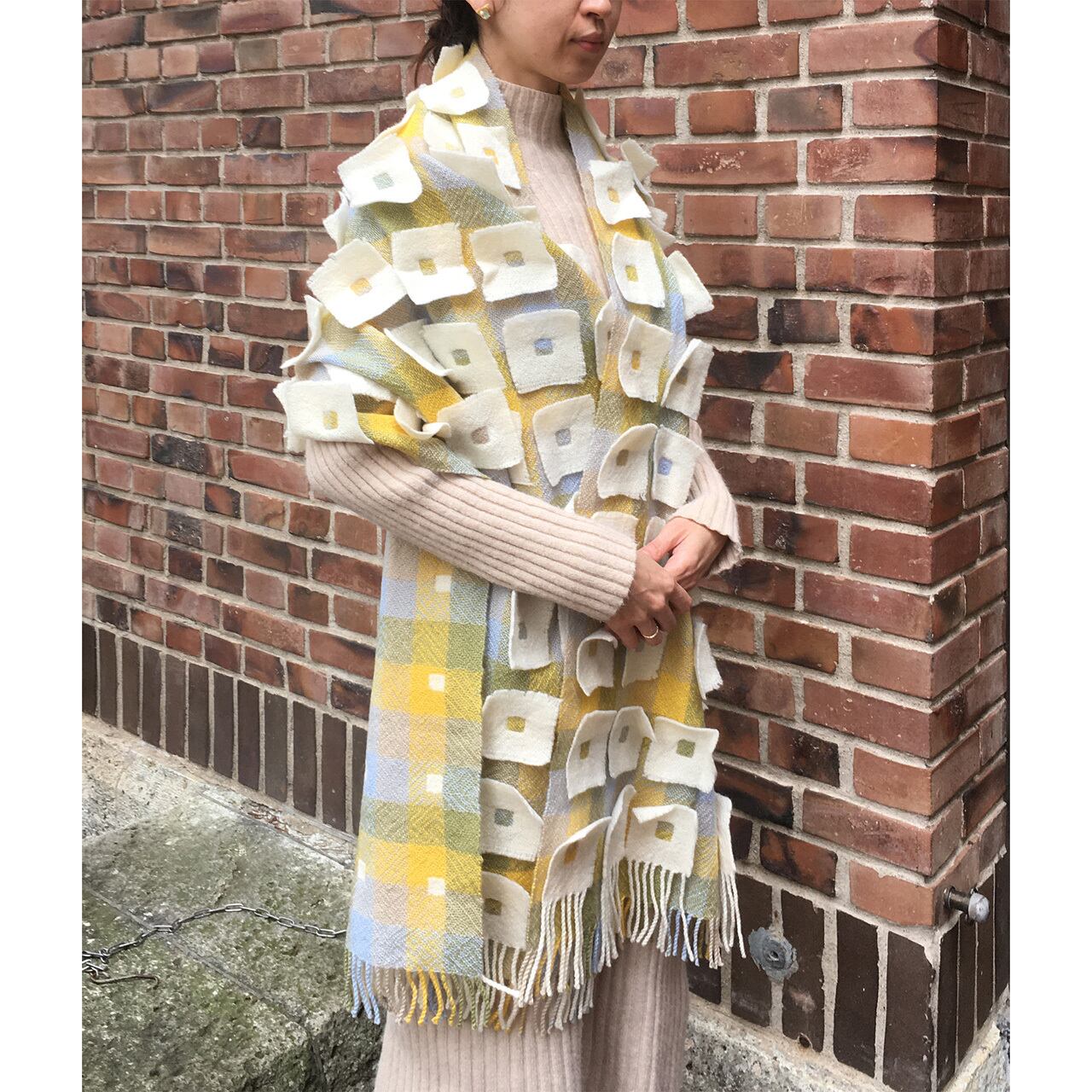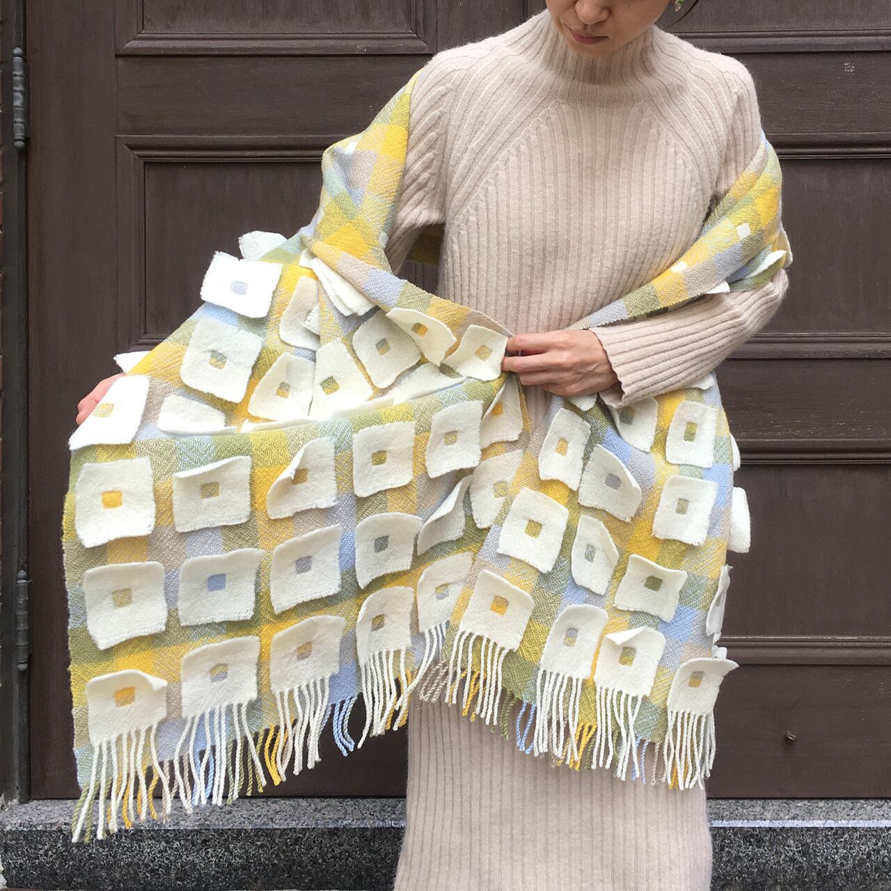 ウールで織った二重織の片面を縮絨途中でカットした一枚布です。