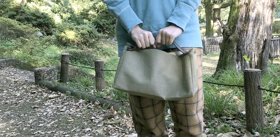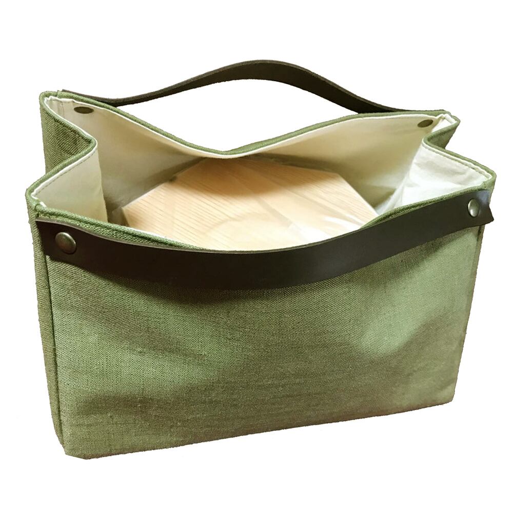 素材 表布:麻 裏地:綿 持ち手:牛革