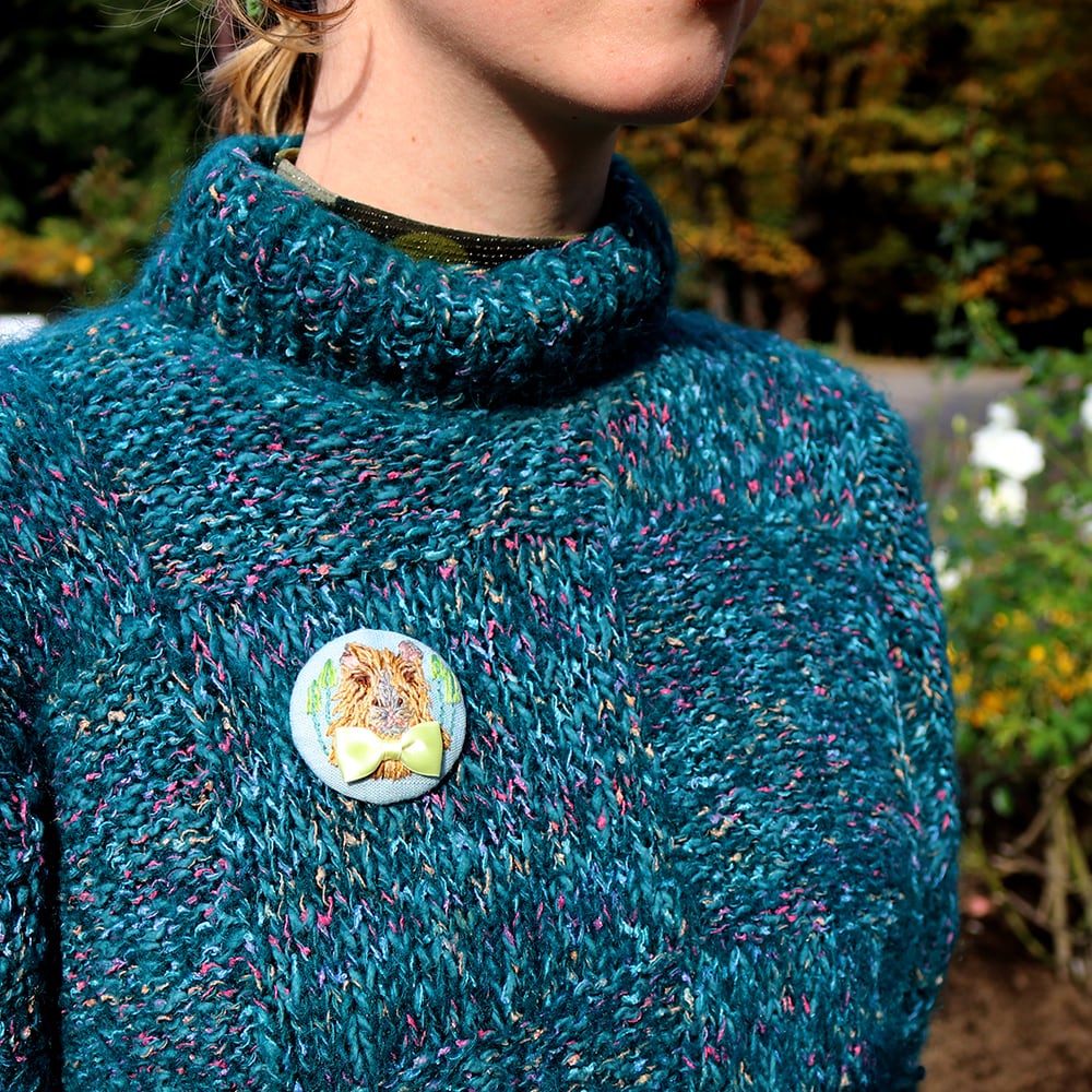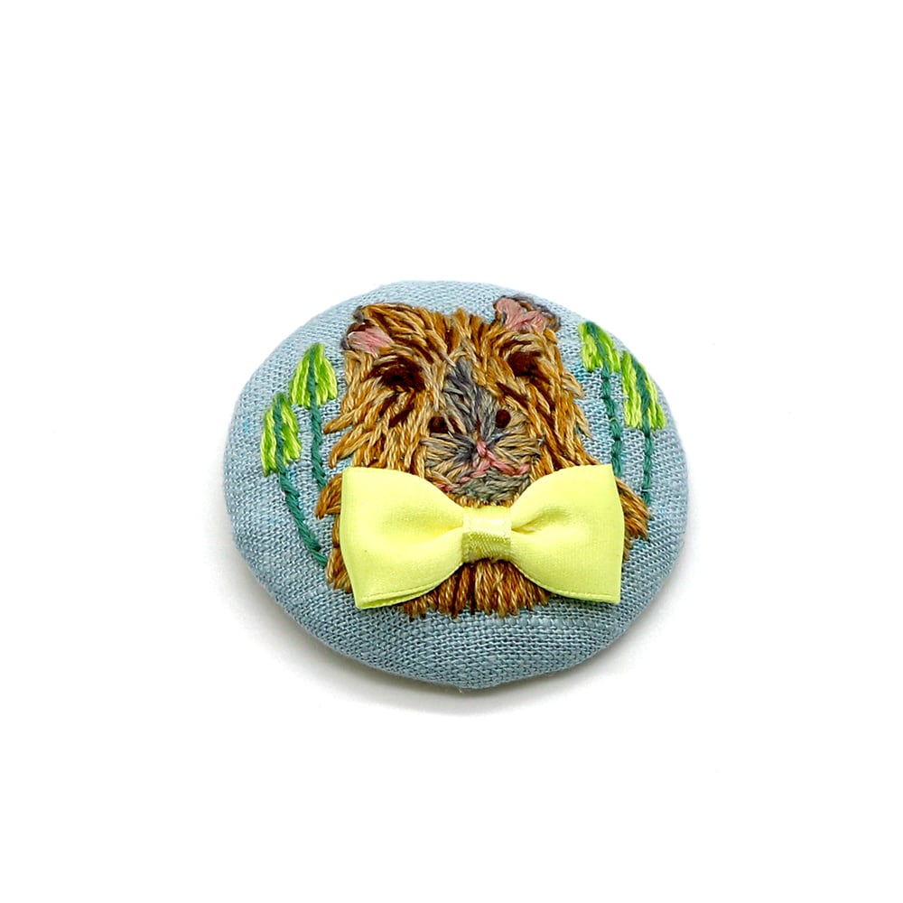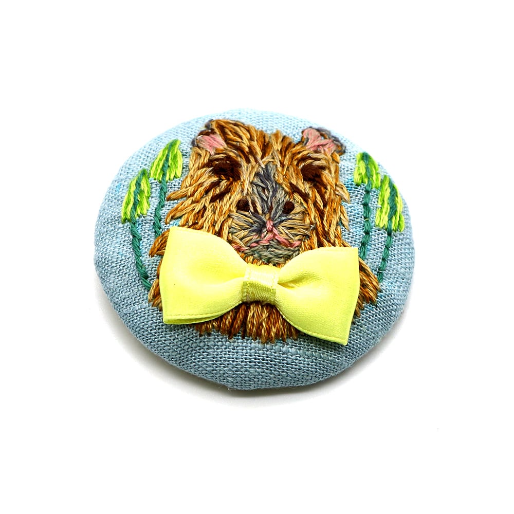 カピバラといえば、動物園でもお馴染みの温泉に入る姿がかわいいので、水色の布に刺繡することで水の中にいる雰囲気を出しました。