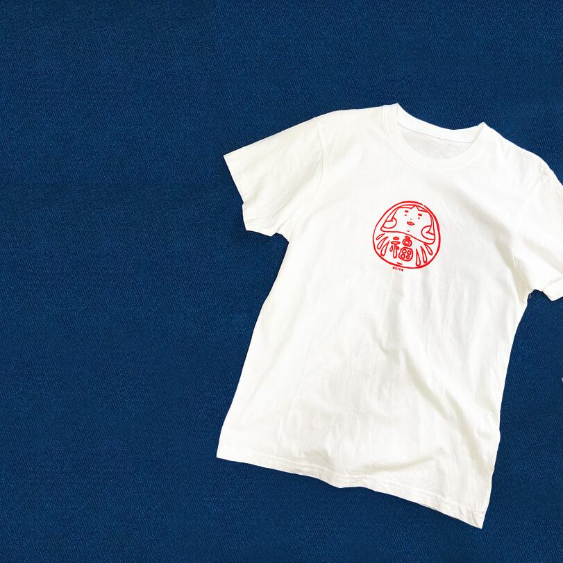 笑っているうちに福がやってくる、これは福のTシャツです。カジュアルだけど個性的なスタイルを演出し、さまざまなコーディネートに合わせやすいアイテムです。(⁎⁍̴̆Ɛ⁍̴̆⁎)