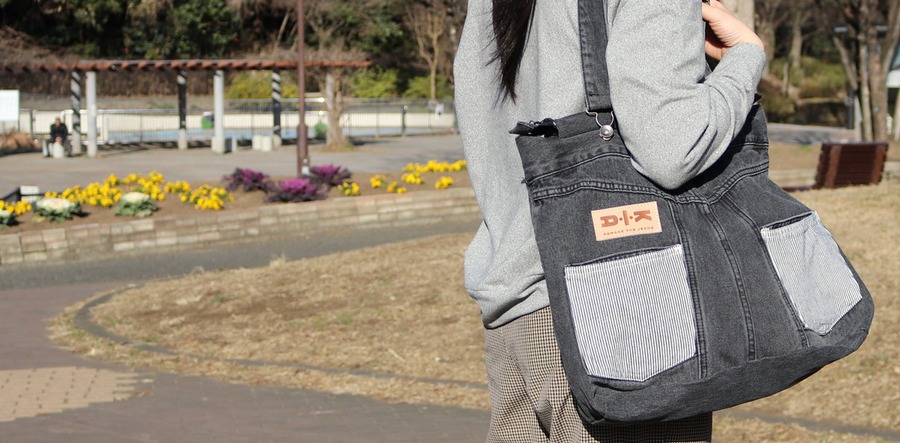 使い込まれたデニムジーンズをリメイクした世界で一つだけのバッグです。